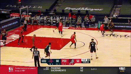 開拓者也利用了他們的內線體型優勢,努爾基奇和坎特都增加了低位進攻。伍德畢竟是undersize的5號位,防低位略顯吃力,他不在時,火箭又沒有正經的替補中鋒,內線身高就更吃虧。
