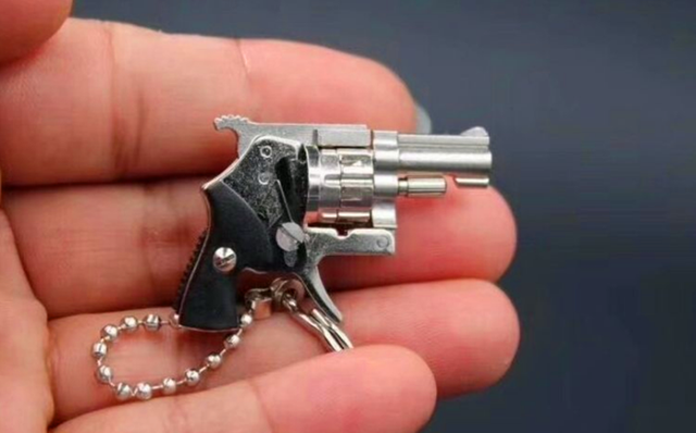 另外,新京報報道稱,鑰匙扣的彈孔被一塊擋板封死,“還有的被螺絲固定在槍體上的實心鼓輪,要想填裝子彈,需要卸掉螺絲,將鑰匙扣拆開,取掉實心鼓輪。”