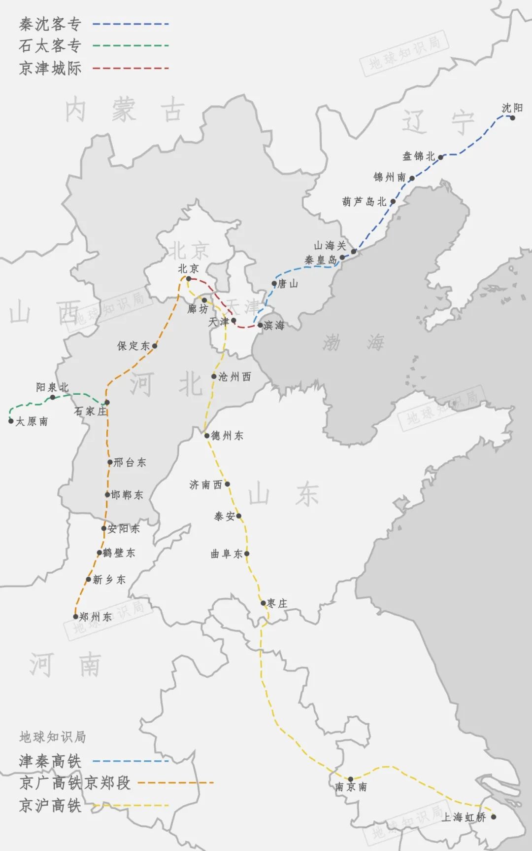 頗有趣味的是,河北省的第一條高鐵和這四地都沒有關係。