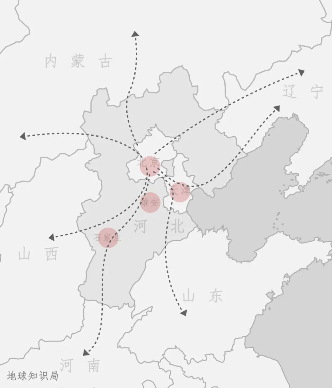所以在尋找河北高鐵中心的時候,顯然不能僅僅侷限於河北省內,至少必須將京津冀三地視為一個整體。由此,河北高鐵的中心實際上有四個,首都北京、直轄市天津、省會石家莊、雄安新區。