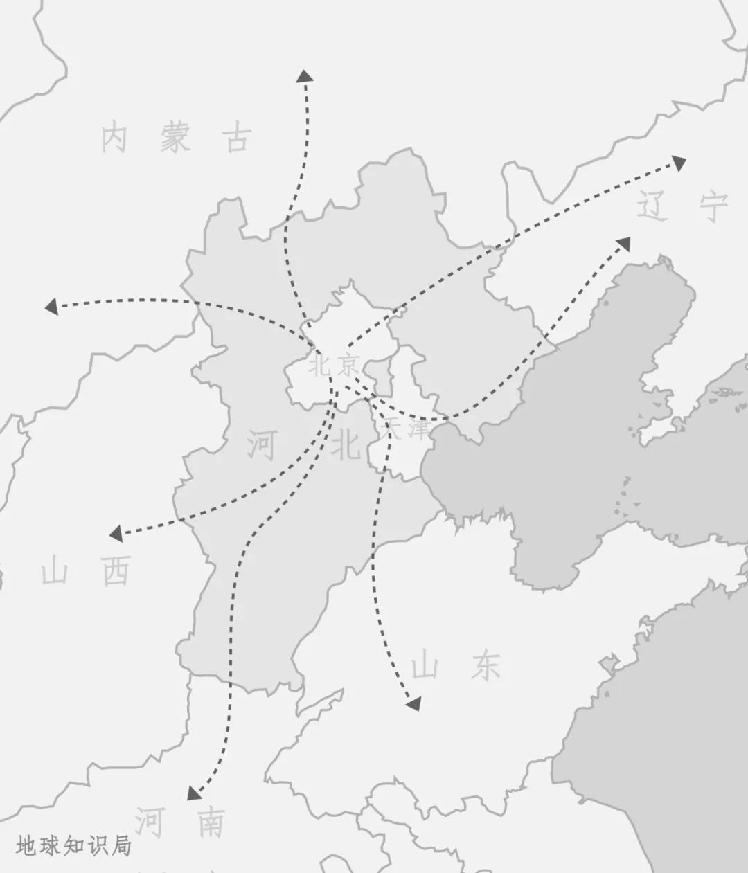 而對於河北來説,另一大特殊之處就是其版圖內部還“包圍”着北京和天津兩個直轄市。兩大直轄市的對外交通聯繫必然離不開河北,同時河北還與遼寧、內蒙古、山西、河南、山東五省份相鄰的特殊區位,都讓河北在一定程度上成為了天然的交通要道。