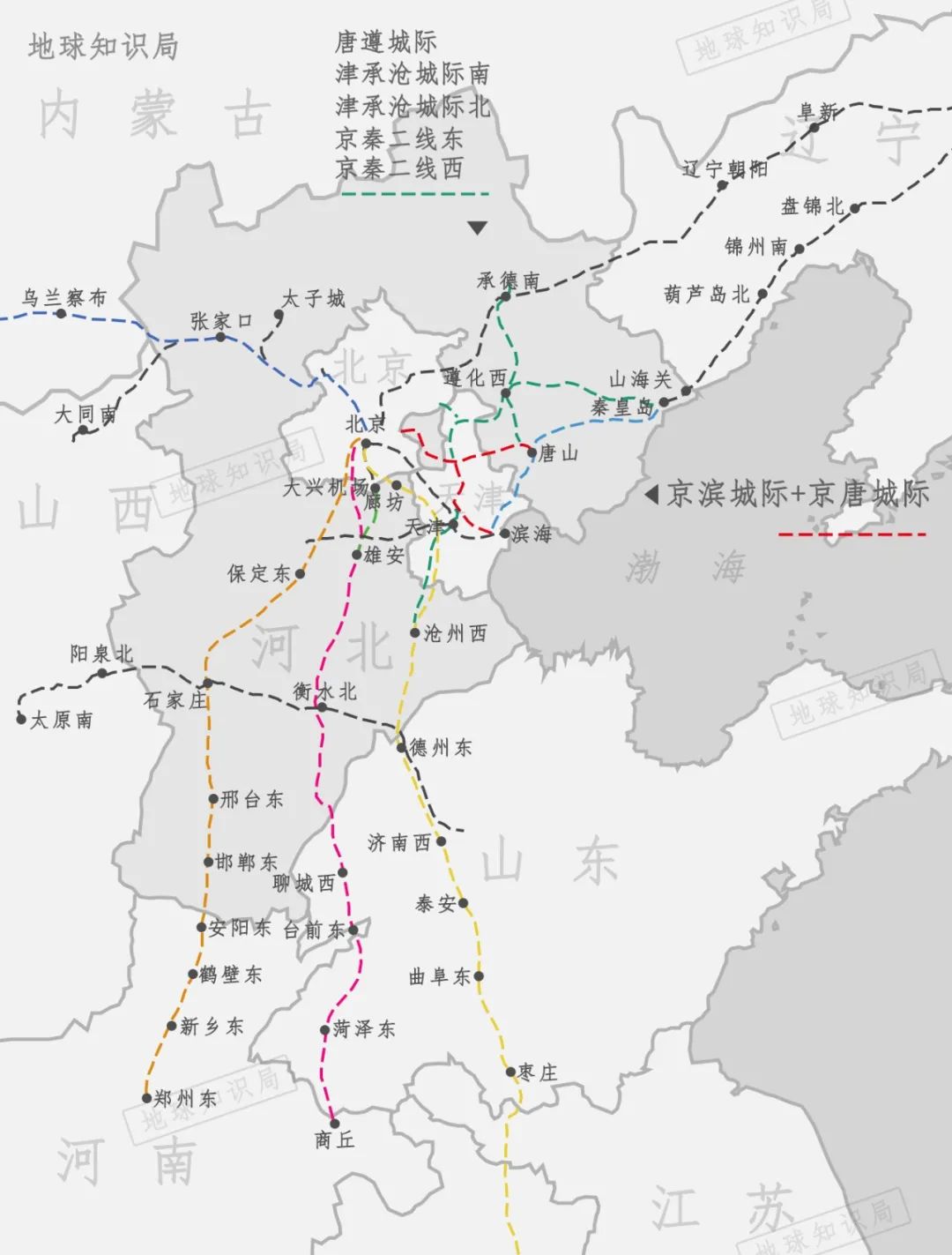 而對於河北來説,除了使廊坊北三縣地區帶入高鐵時代外,唐山和秦皇島兩地也將實現與北京之間的高鐵直連,再也不用繞行天津。遠景規劃之中,京秦之間還將建設第二城際,但它是條複合線路,部分利用其它高鐵,只新建平薊和遵秦段。
