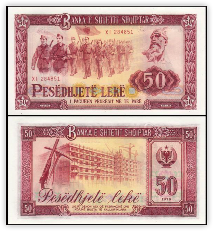 1963年到1992年,中國累計為阿爾巴尼亞印刷10種面值的鈔票。