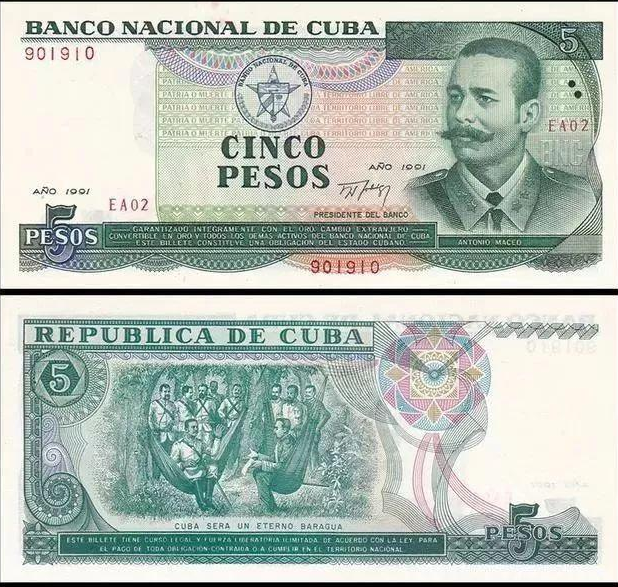 1990、1992年,中國分別為古巴印製面值5、10、20、50比索紙幣。