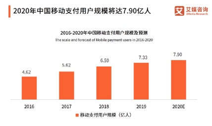 2020年中國移動支付用户規模近8億人,超過了總人口的三分之二。