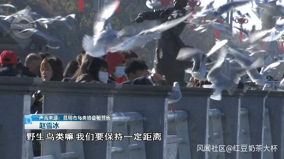 昆明市鳥類協會秘書長趙雪冰:“野生鳥類嘛,我們要保持一定距離,像投餵時不容易驚嚇到鳥,特別是更不要去抓,很容易傷害到鳥,而且近距離接觸,如果有疾病,感染的幾率更大,所以保持一定距離觀鷗,對鳥對人都是好的。”