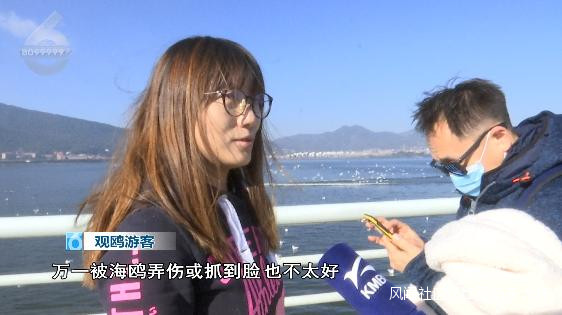 採訪中,不少觀鷗遊客表示,這樣的投餵姿勢拍照雖然新奇,但是無論是對遊客還是對海鷗來説,都不太合適。