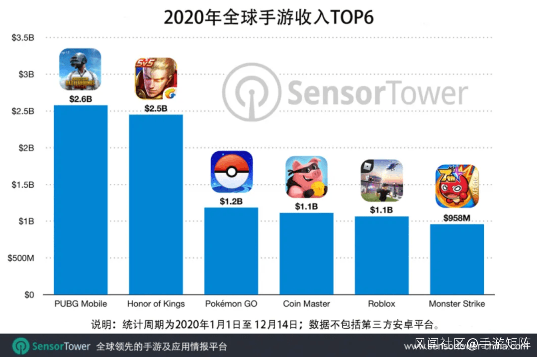 近日,移動應用數據分析公司Sensor Tower公佈了2020年收入最高的6款手遊產品,其中有5款手遊的年收入已經超過了10億美元,躋身“十億美元俱樂部”。