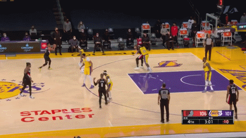 107-115,湖人倒在開拓者腳下,在本場比賽之前,紫金軍團在前三節領先的情況下取得59連勝,伴隨着這場失利,這一記錄戛然而止。