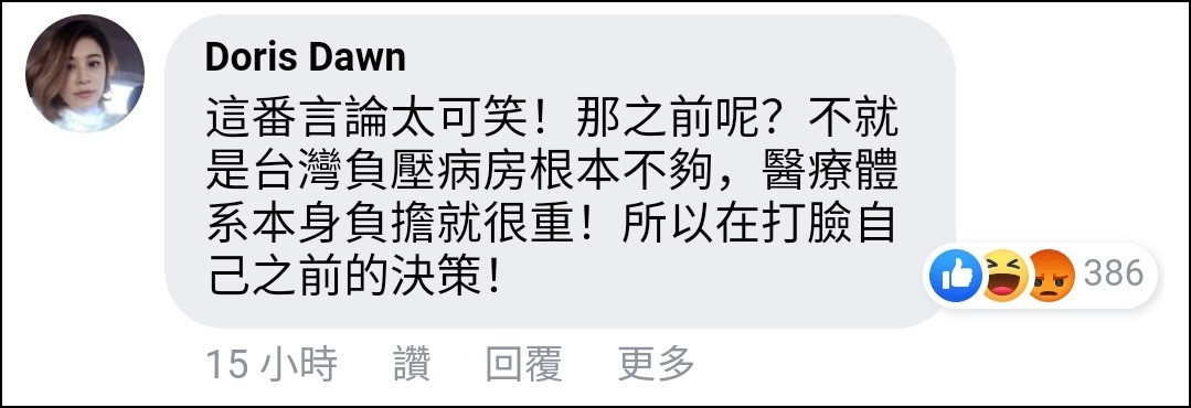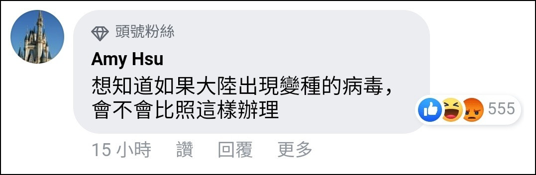社交網絡上,不少台灣網民痛批:“你在拿人民及醫護人員的生命開玩笑,有事嗎?”、“想知道如果大陸出現變種的病毒,會不會比照這樣辦理”、“(陳時中的)這番言論太可笑!那之前呢?不就是台灣負壓病房根本不夠,醫療體系本身負擔就很重!所以在打臉自己之前的決策!”
