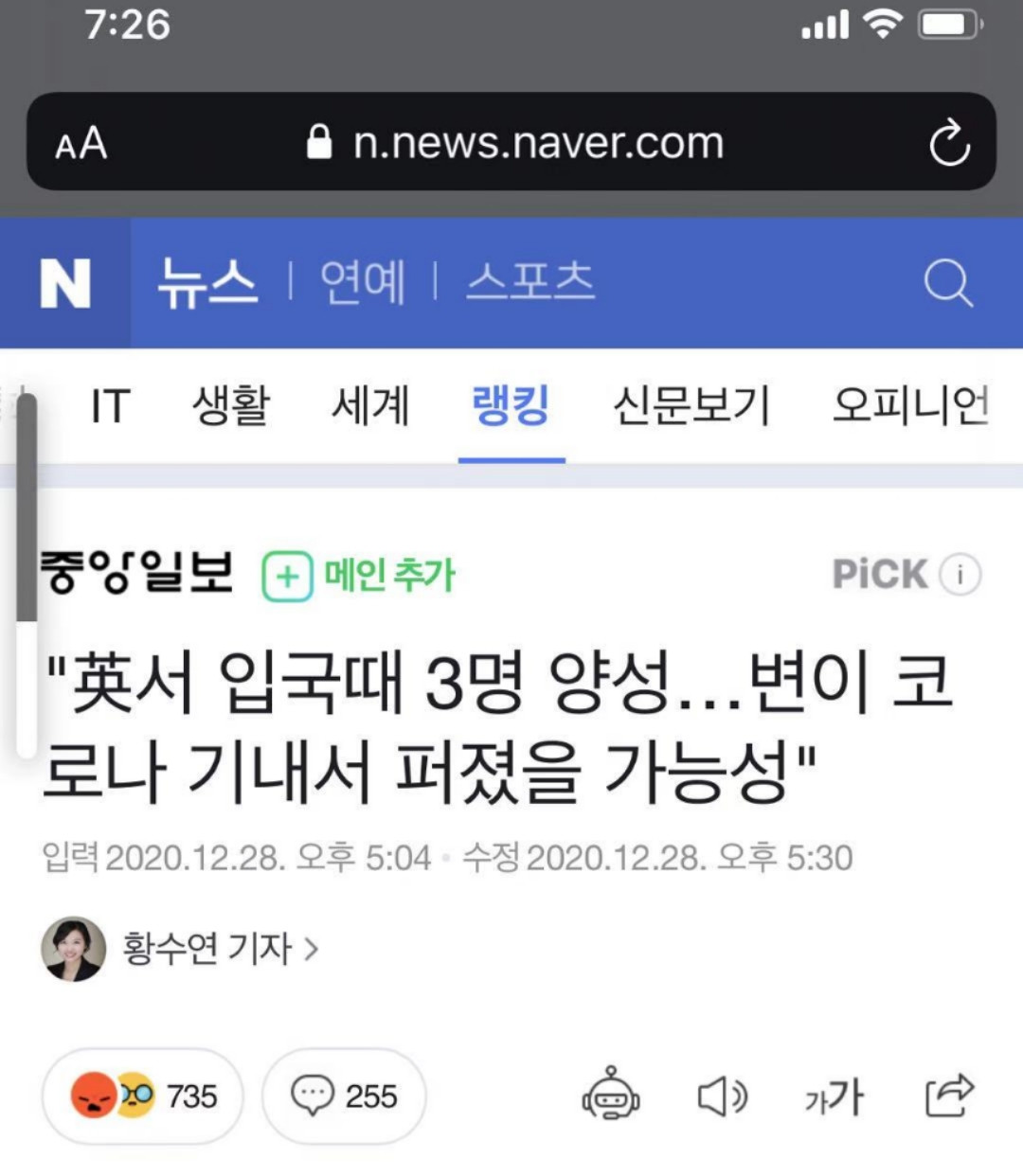 再説一點我自己的猜想,英國的變異病毒,估計早特麼進韓國了。就是沒説而已,大家都拉褲兜子了,就看誰先脱褲子,我看就是這麼回事。英國這是捂不住了,屎都掉腳面上了,就先説了。這別的國家陸陸續續説英國變異病毒傳入我國,不信你看,馬來西亞,加拿大,歐洲各國,包括韓國,這才紛紛張嘴。