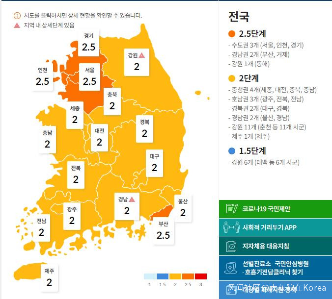 綠色是每日確診,挺穩定的,一天一千多人。去年新冠分佈,除了京畿道,多半是文大統領老家那邊慶尚道。經過一年的辛苦抗疫,原本地圖上的兩顆蛋,攤成了一全國張餅,請看下圖: