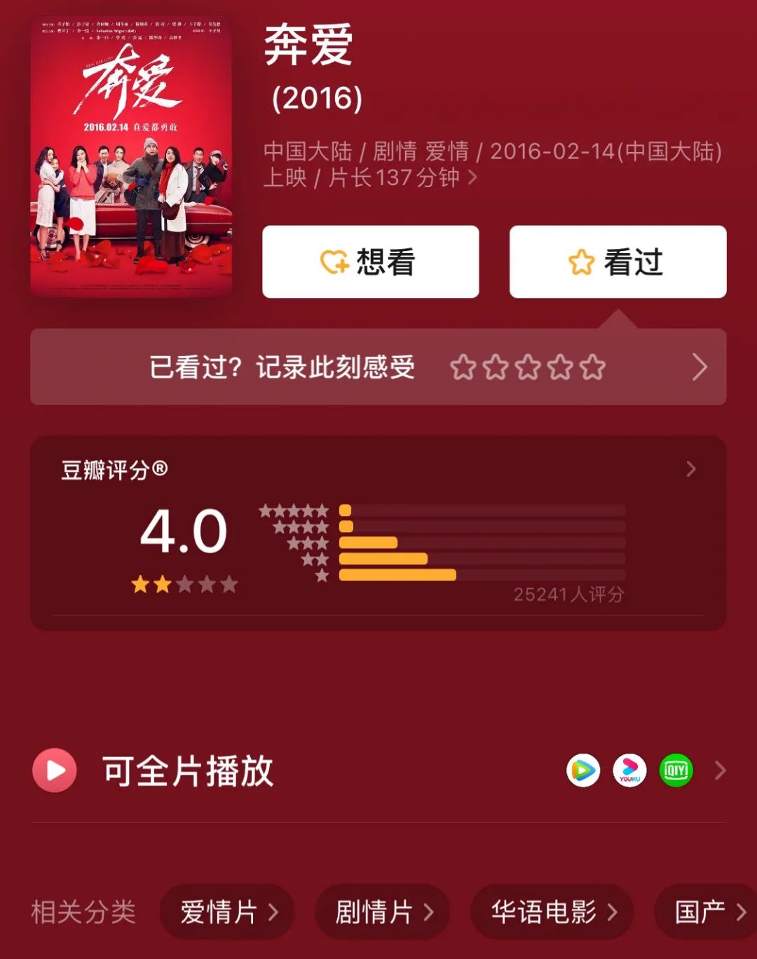 章子怡大概是忘了,豆瓣上有一部評分4.0的電影《奔愛》,她主演的。