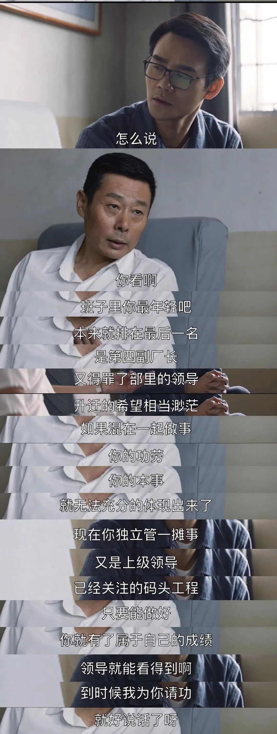**説話果然是門藝術,而《大江大河2》顯然在這部分做到了極致。**以經典台詞為牽引,劇中刻畫的人物羣像不是非黑即白,也不是單薄的好與壞,更多是夾雜在利益糾葛中的灰色體,每個人都是從自己的視角出發,每個舉動都合乎情理,而隨着後續故事推進人物的另一面顯現,那些暗戳戳埋下的線索也就成了值得反覆琢磨的神來之筆。