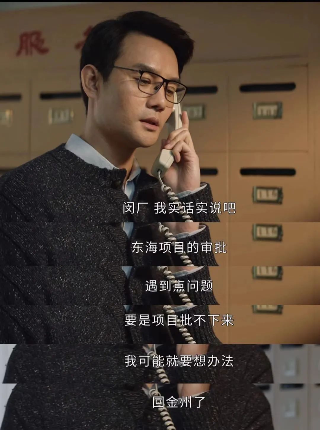 故事的一開篇,離開金州前往東海項目組的宋運輝便遭遇了難題:項目在被斃的邊緣,而他更是被馬主任“祭出來”承擔責任的眾矢之的。之後,和閔忠生打電話要求其幫忙引薦李司長、讓李司長幫忙引薦路司長,以及和路司長之間的談話,三段對話,其中的話裏藏刀、鋒芒必露,人物之間的拉鋸戰,堪稱精彩絕倫。