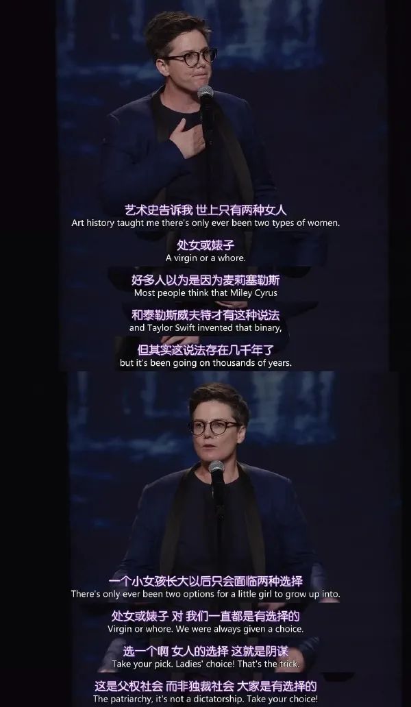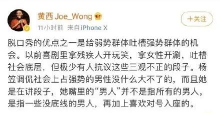 還有一些人説,楊笠應該在自己的表演中特意強調一下,自己針對的只是部分男性,不應該統稱“男人”。