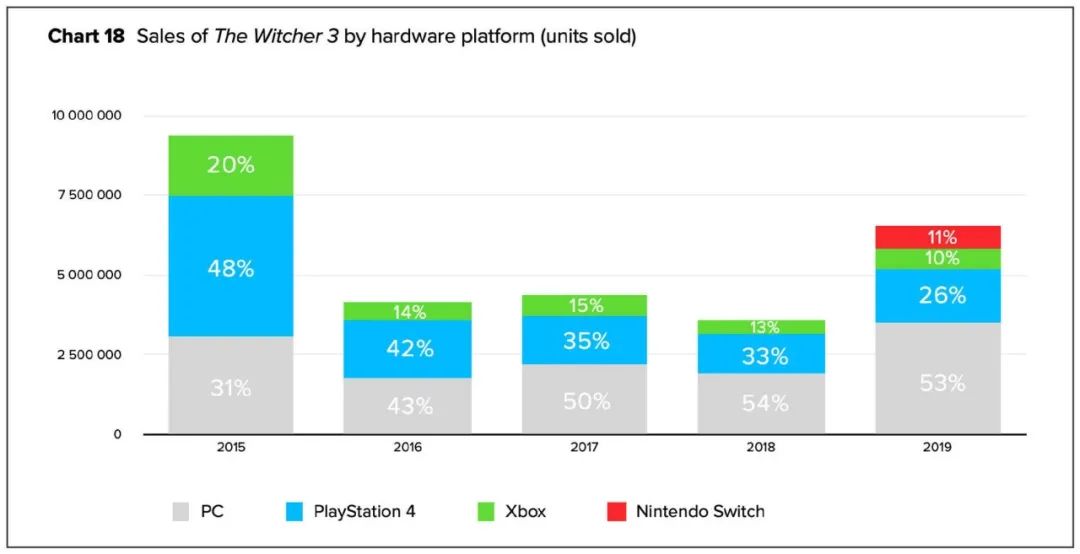 事實也證明了,CDPR 通過自己的方式取得了顯著的成功。《巫師3》在 TGA 2015 上擊敗《輻射4》《血源詛咒》《合金裝備5:幻痛》和《超級馬里奧製造》,成為「年度最佳遊戲」;而遊戲之後也連年熱賣,累積銷量達到 2800 萬份。