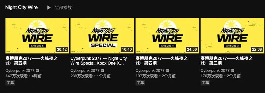 我們會覺得《2077》的營銷規模超過了相近體量的作品,原因也繞不開 CDPR 在中國市場做了相應的本地化佈局。比如説在去年年底,《2077》的情報站就已在 B 站上開通,平台方發起了預約活動、賽博朋克文化的視頻徵稿,《火線夜之城》的中文視頻內容也在通過 B 站渠道對外傳播。