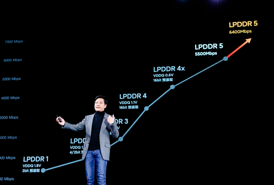 此外,小米 11 還首發了 “ 滿血版 ” ( 3200 MHz )的 LPDDR5 高速閃存,速率從之前的 5500 Mbps 提升到了 6400 Mbps 。