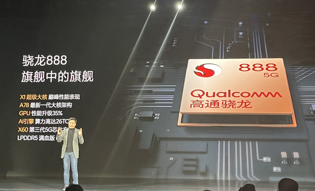 小米 11 這次首發了高通驍龍 888 處理器,這是蘋果 A14 、麒麟 9000 之後的第三顆 5nm 工藝處理器。