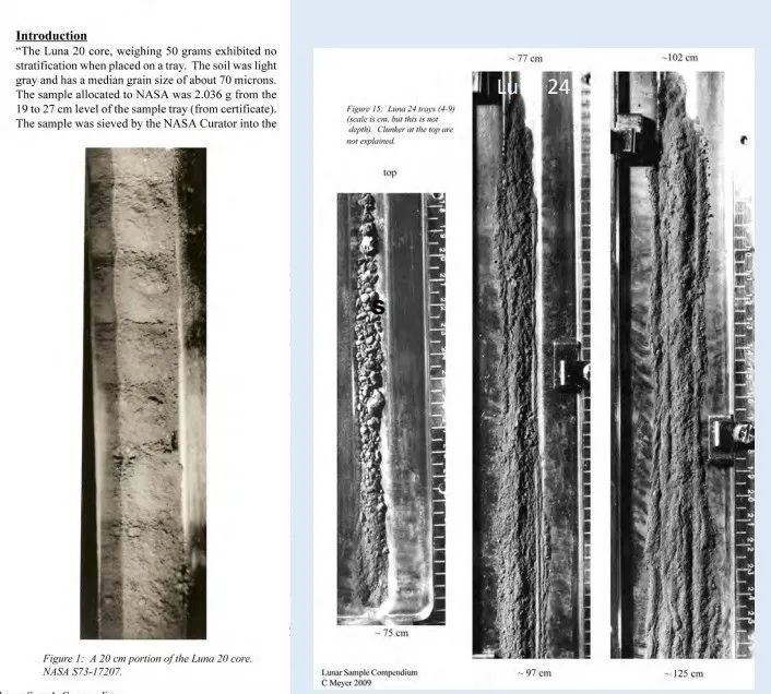 月球20號和24號鑽取採集的樣品示例。三次採樣分別帶回了101克、55克和170克月球樣品 | NASA/Meyer [3]