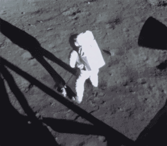 奧爾德林走下梯子,阿姆斯特朗拍攝 | AS11-40-5866