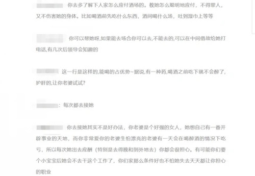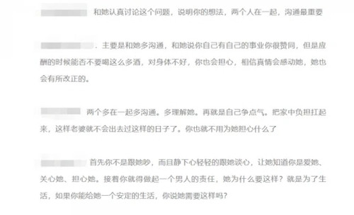 雙方溝通也並不能完全解決陪客户應酬的問題,也有人出主意,在不得不去的情況下,身為丈夫能做些什麼: