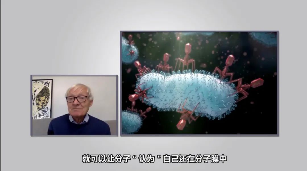 所以,當有技術用脂質層包圍分子時,分子甚至不會發現它其實並不在膜中,所以它變成了一個單一的粒子。這樣即使分子不在其自然環境中,我們也能獲得結構,你知道,這就像是引入一個假環境。