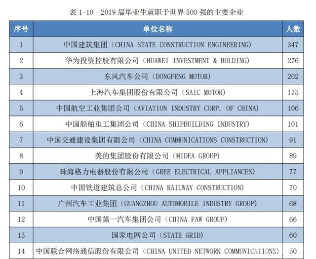 另外,中國建築,華為,上汽在武漢理工畢業生就業去向中排前五位,