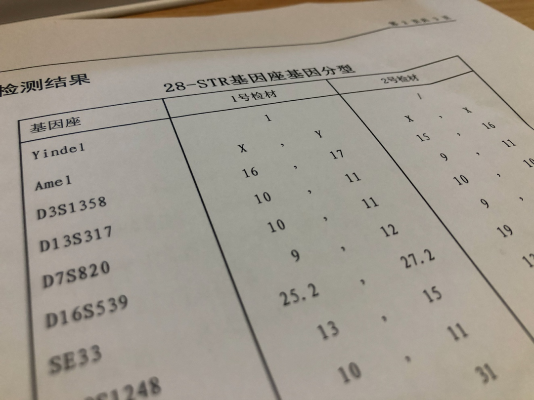 對比1號和2號檢測材料,X、Y基因下的數字若出現2組及以上的找不到對應數字,就可以排除親子關係