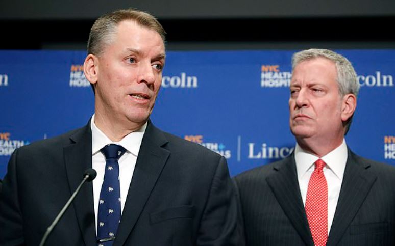 謝伊(左)和紐約市長白思豪(右)合影 圖源美聯社