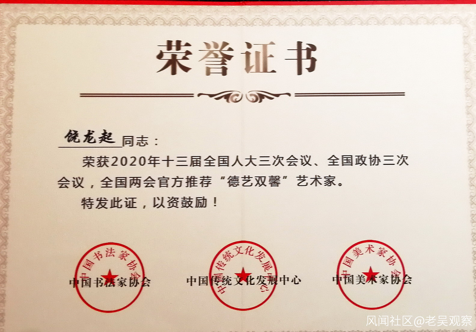如今,饒龍起不但在書畫方面取得了驕人成就,在事業方面也順風順水,從小縣城普通市民成為大都市一員,擔任中共固始縣駐河南某裝飾有限公司支部書記。