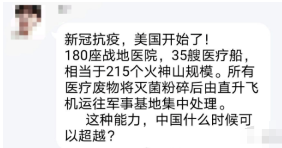你若相信他們的説法,盎格魯撒克遜人還有“偉大而平凡的民族性”,美國感染絕不會超過200例,超過了他就吃翔;美國醫療強大無比,35艘醫療船正在趕來,180野戰醫院搭建完畢,還要數萬無私的醫護人員奔赴前線,美國治病還不要錢……小小新冠,何足道哉?