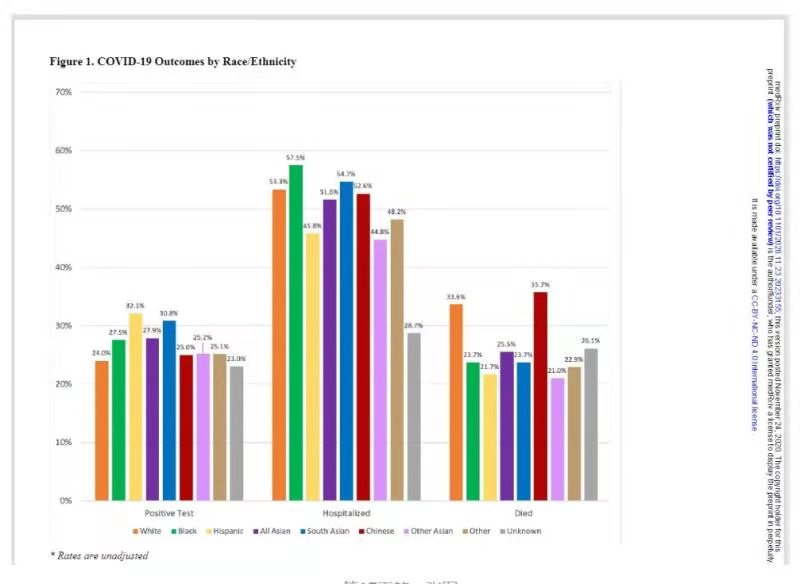 這份發表於醫學論文網站的報告顯示,根據今年3月1日至5月31日紐約市公立醫院內COVID-19患者的數據,華人患者的死亡率是所有族裔中最高的,死亡率是白人的近1.5倍。