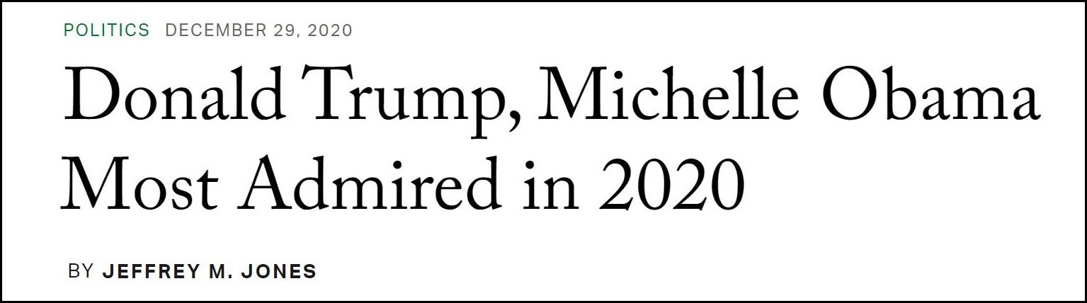通常而言,現任總統憑藉着強大的執政優勢都能在蓋勒普公司的這項調查中站上榜首位置,但是在過去的三年裏,特朗普仍然不敵於奧巴馬。差距最小是在去年,特朗普和奧巴馬的支持率相同,因而並列成為2019年最受美國民眾愛戴的男性。