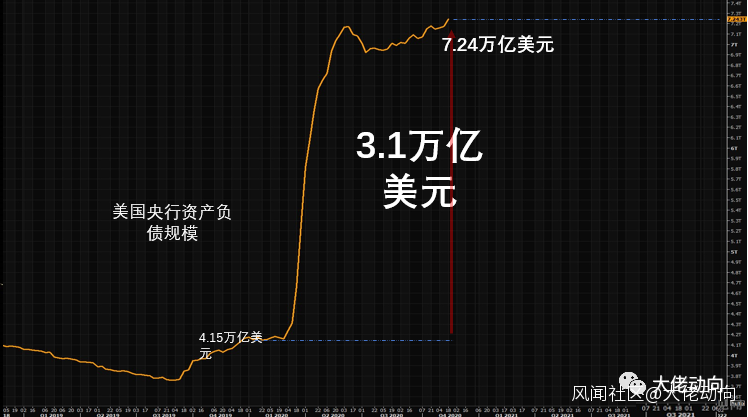 據報道稱,其中包括了每週600美元、總額9000億美元的聯邦失業救濟。這是上半年聯邦政府大放水之後,再次大規模給民眾直接撒錢。顯然,美國經濟復甦依然疲軟,需要進一步刺激,疊加新冠疫情二次爆發,美國當局者不得不再次打開貨幣放水的閘門。一印解千愁,已經成為美國各方最大的共識。平常沒病沒災,要搞大規模印鈔,是不可能的。一方面,美國政府的債務紅線有明確限制,更為重要的,美元是全球貨幣,美元大放水對全球的美元存款都是威脅,尤其是像中國和日本這種擁有大量外匯儲備的國家,最為受傷。3萬億的外匯儲備,美元貶值10%,就是實際價值損失3000億美元。有人説,“我們持有大量美國國債,可以對沖。”醒醒吧,朋友們。看一看美國基準利率已經是0-0.25%了,扣除接近2%的通脹,每年的收益就是負數。説白了,這就是作為世界貨幣的美元鐮刀的厲害所在。鄰居王大爺很氣憤:“美損,我不服”!不服沒用。在你人民幣沒有成為世界貨幣之前,這種被收割的風險就一直存在,這是一個後發追趕國不得不支付的成本。02對於這次撒錢,特朗普顯然並不滿意,在他的內心裏,新冠紓困資金還是太少,放水規模至少應該再放大三倍。特朗普在推特上發佈視頻説:“我會要求國會修改這項法案,將低的離譜的600美元提高到2000美元,或一對夫妻4000美元。”如果搞到2000美元,那這次新冠紓困方案的理想規模應該在3萬億美元!從這個角度講,12月27日的暫時妥協,並不意味着美國大規模撒錢的結束,很大概率只是新一輪的開始。覆盤2020年,美國到底撒了多少錢?答案是史!無!前!例!下圖是美國央行資產負債表規模今年的走勢: