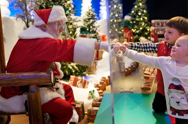 康涅狄格州的商場裏,小男孩們告訴聖誕老人自己想要的禮物 圖源AP