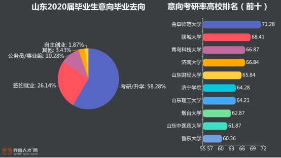 在另一項調查中,曲阜師範大學約有71.28%的畢業生有考研意向,在所有山東省高校中排名第一。