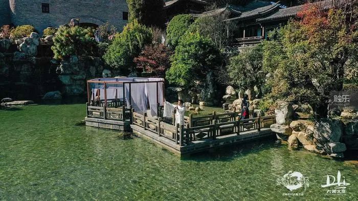 作為新文創落地的壘翠園,園區內的佈置超出了我的想象。一進園區,我就看到了各種各樣的Coser,扮演着《天龍八部》中的不同角色。在經過他們身邊時,同行的朋友向我逐一科普:這是王語嫣,這是段譽,這是喬峯……總共有6名工作人員扮演《天龍八部》中的6個主要角色,但現場穿着古代服飾的遠遠不止他們。幾位戴着草帽的船伕在湖中撐起漁船,衣着華麗的公子哥兒在涼亭裏下棋,路邊賣酒的小販賣力地吆喝,從酒罈子裏舀出酒來,盛在海碗裏。