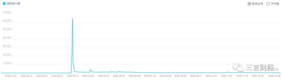 “薇婭賣火箭”的百度指數在4月初達到峯值,此後關注度逐漸下降。