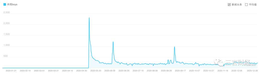 從“央視BOYS”的百度指數圖中,也可以明顯看出直播當晚達到峯值,此後逐漸下降,但仍保持有一定的關注度。