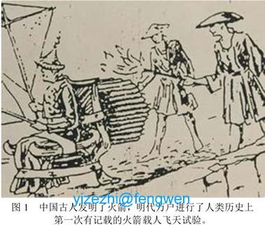 我們的先人發明了火箭,但自明代萬户的載人飛天試驗(參見圖1)以失敗告終之後,直至新中國推動航天事業,吾族似乎再也無人主動探索、改進並實驗。於是,人類飛天夢的真正率先實現者就只能名歸前蘇聯科技工作者和航天員加加林,而非吾族人。不過,如果把航空也看作一種飛天,其率先實現者則是美國人萊特兄弟。