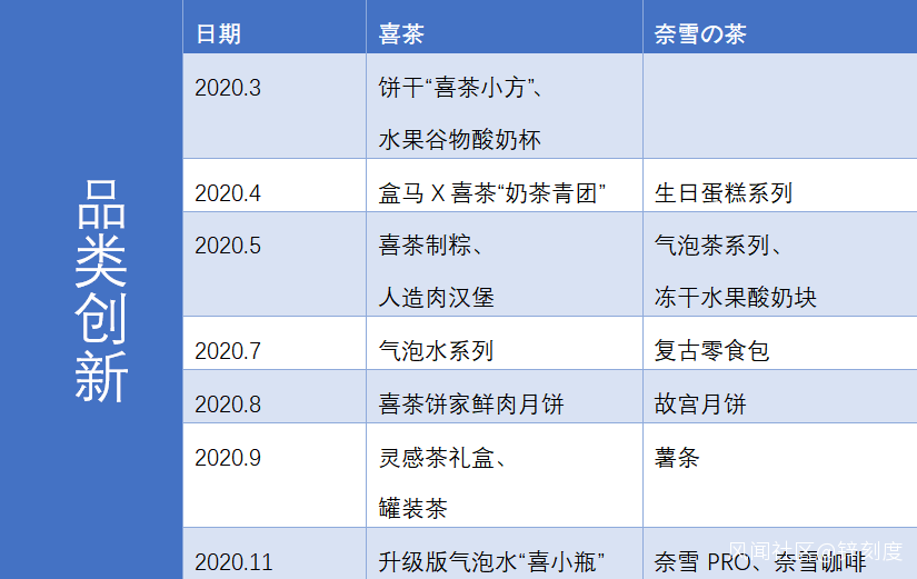 喜茶與奈雪的茶品類創新對比(製圖:鋅刻度)