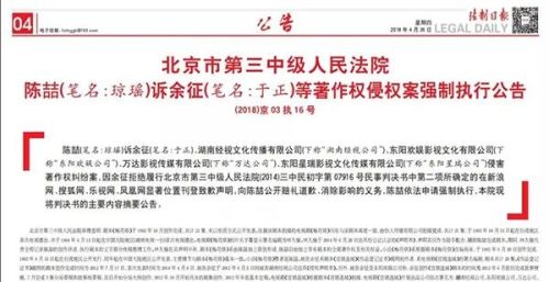 然而當時,於正不僅拒絕公開道歉,還玩起了消失,手機不通,郵件退回。到2018年,瓊瑤依法申請強制執行,法院隨後在《法制日報》上刊登判決主要內容,所需費用由於正承擔。