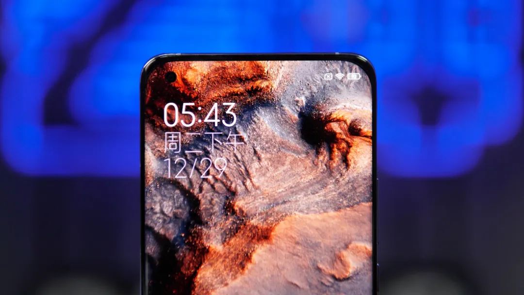 來到正面,小米 11 採用了一塊打孔四曲面屏幕,屏幕的曲率有所減少,降低了誤觸的概率。