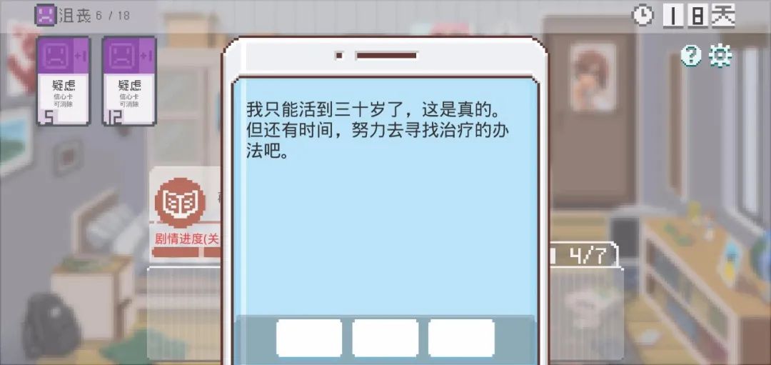 「但這不是我想要的。」汪小小告訴我,「如果我做出了《如早2》,可能我這一輩子就只能做解謎遊戲了。我不想只被一種可能性束縛着。」後來他真的跳出了舒適區,在《如果一生只有三十歲》這部互動敍事作品裏,混搭了抽卡、模擬經營、放置等各類遊戲的元素。