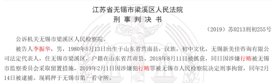在易利華被判決之前,**向他行賄的李振華已被無錫梁溪區人民法院以行賄罪,判處有期徒刑五年。**這一判決向外釋放強烈信號:給醫院院長、醫生支付回扣、好處費,一樣會被追究刑責。