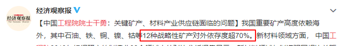 但鐵礦石,以及對工業發展極其重要的石油,卻真的是我們的資源傷痛。當下,二者的對外依存度都 超過了70% 。
