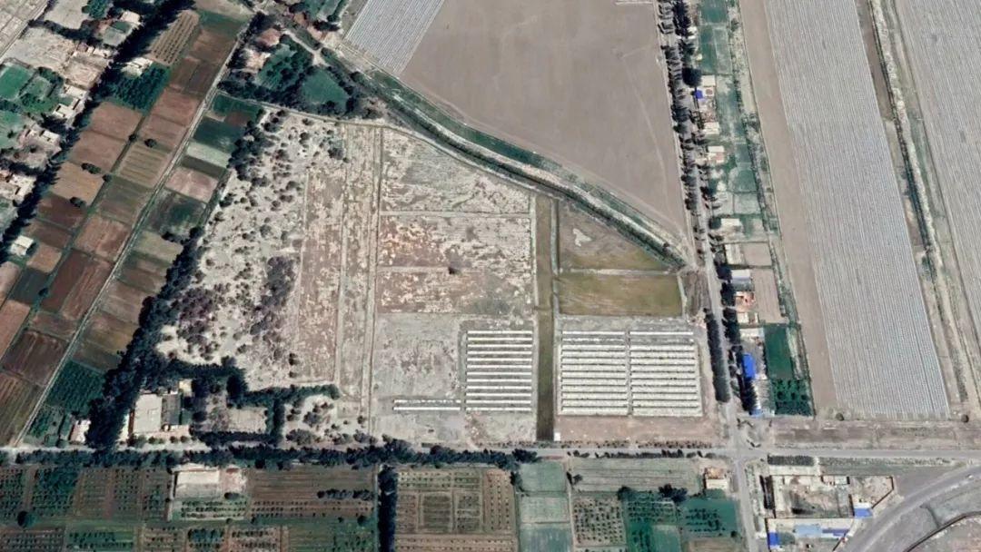 在下圖衞星地圖上可以看到,這片老墳墓附近在2018年底變成了新的生態墓地。2018年底,艾皮扎木將他老伴的墓遷到了這片新墓地,僅距離老墓地不到100米的位置。