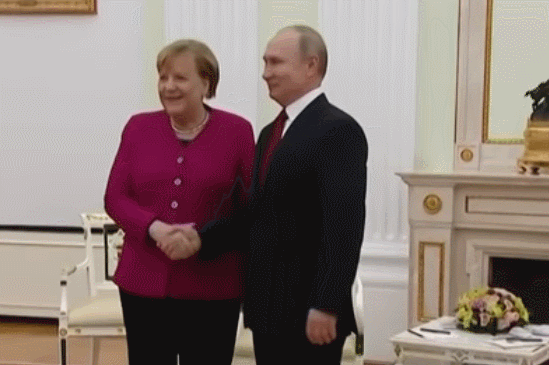 1月11日,俄羅斯總統普京在克林姆林宮會見了來訪的德國總理默克爾(@今日俄羅斯)
